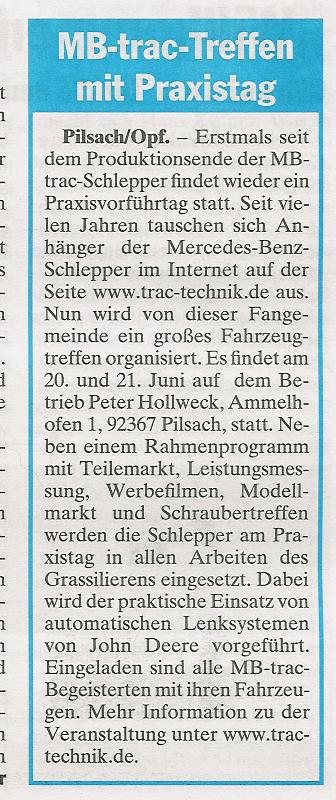 und es gibt sogar schon einen redaktionellen Artikel über das Treffen im Bayrischen Landwirtschaftl. Wochenblatt, w o auch diese Website genannt wird. Das nenne ich mal gelungene PR- Arbeit. Respekt!