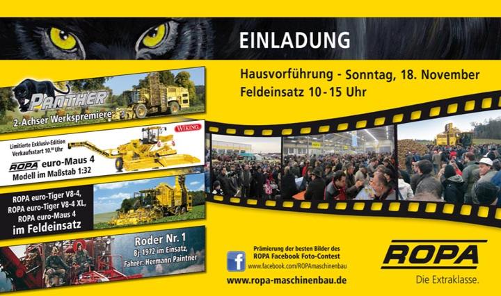 auch in diesem Jahr findet am 23.11. wieder eine "Hausmesse" bei der Firm Ropa in Sittelsdorf statt.