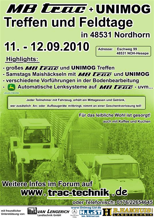 veranstalten wir am Wochenende 11.-12.September 2010 ein MBtrac und Unimog Treffen,