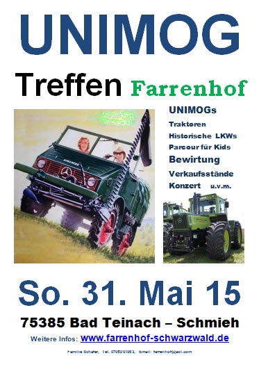 Am 31.5.2015 findet wieder das Unimog und MB Trac Treffen in Bad Teinach Schmieh statt.