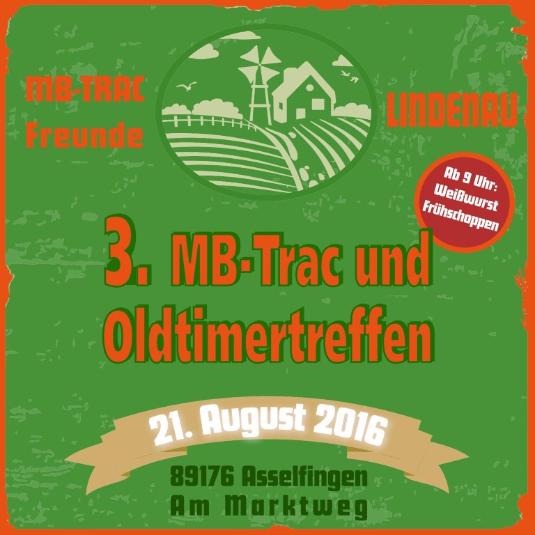 Die MB-Trac Freunde Lindenau richten dieses Jahr ihr 3. MB-Trac und Oldtimertreffen in 89176 Asselfingen aus.