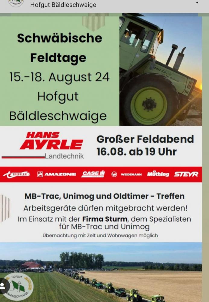 Schwäbische Feldtage mit MB-Trac Treffen auf der Bäldleschwaige 15. - 18.8.24
